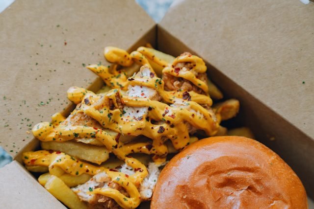Frites fraiches, sauce cheddar maison, morceaux de bacon et jalapeños.